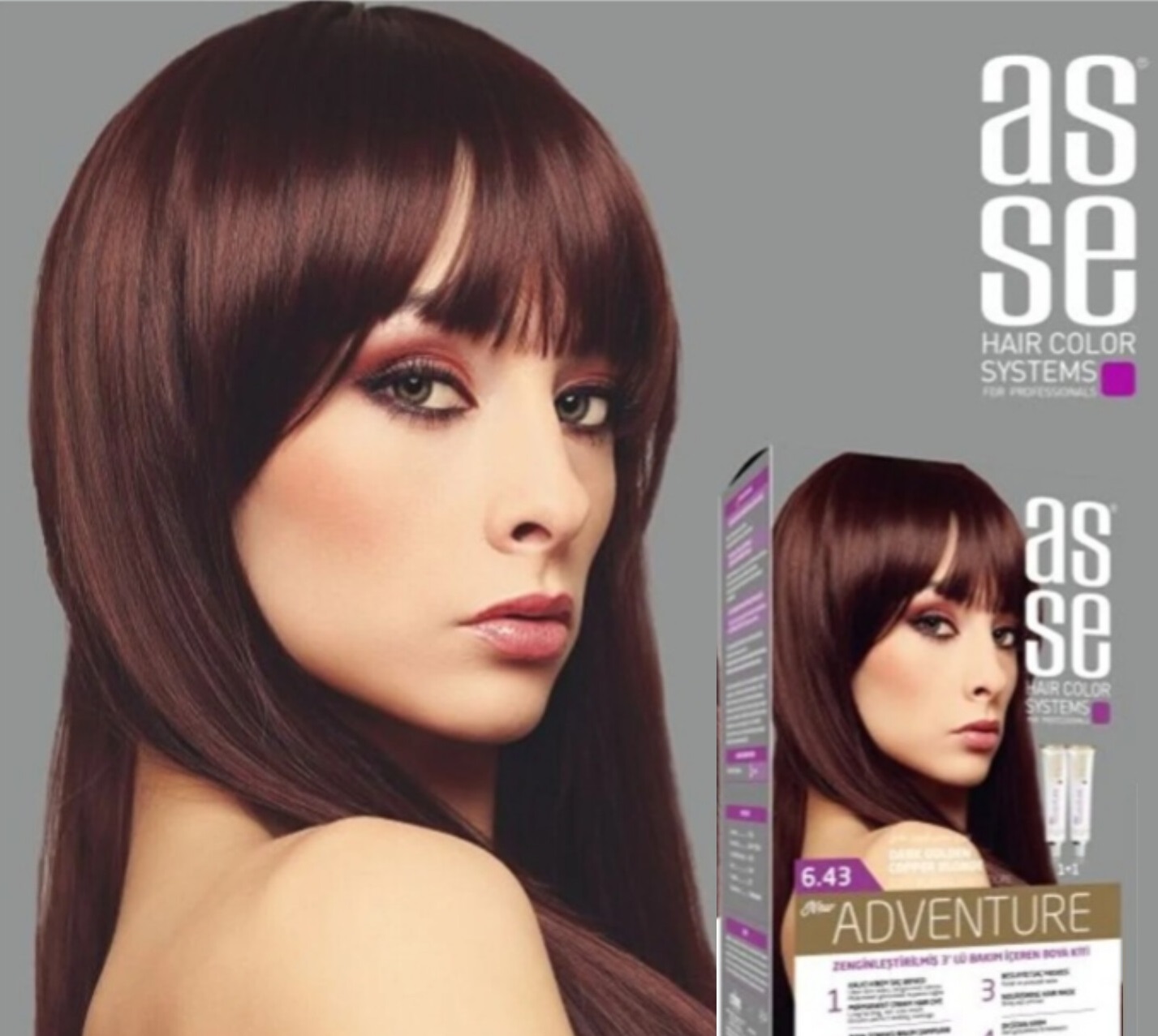 کیت رنگ مو بدون آمونیاک آسه asse دو تیوپه شماره 6.43