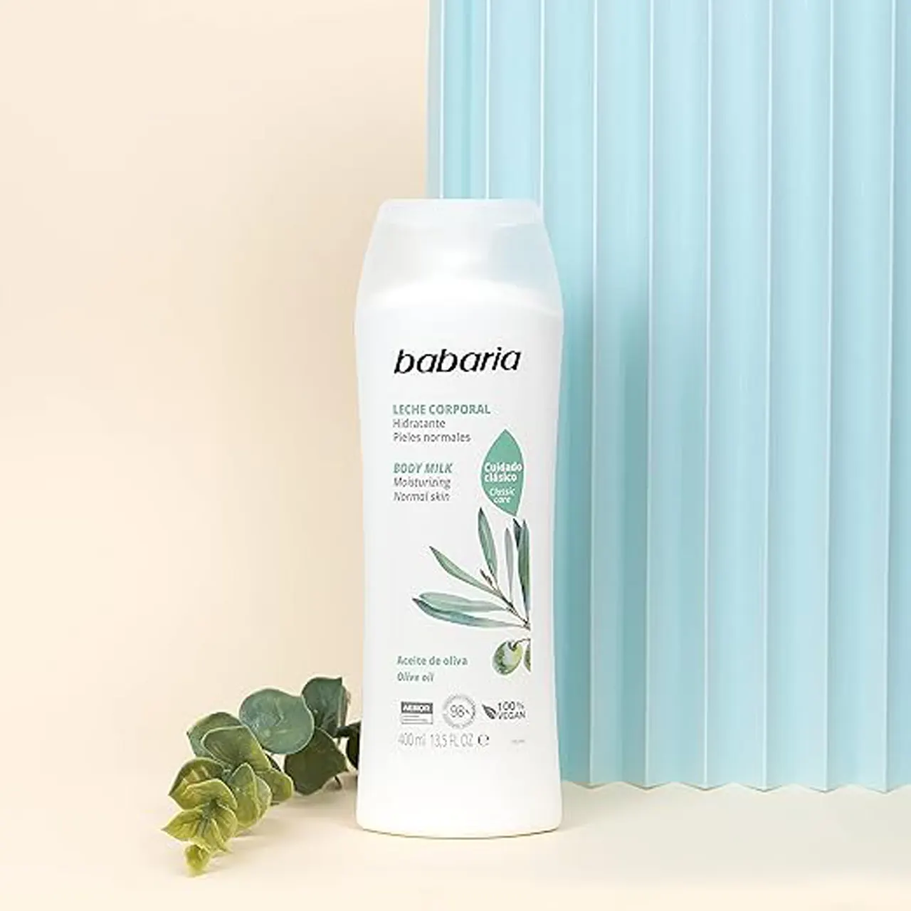 شیر بدن باباریا babaria حاوی روغن زیتون مناسب پوست نرمال حجم 400 میل