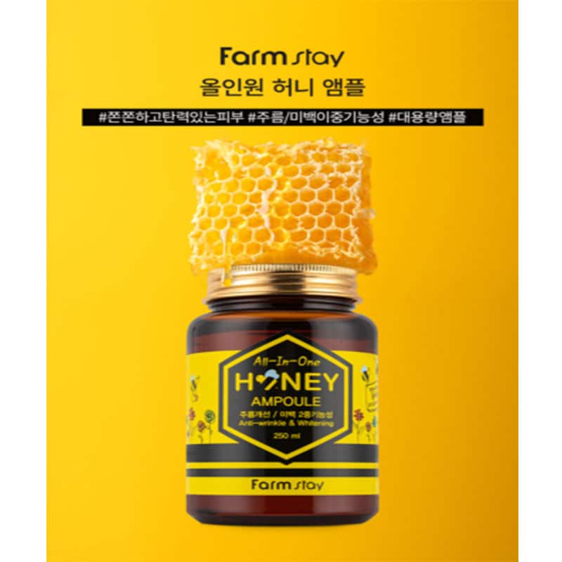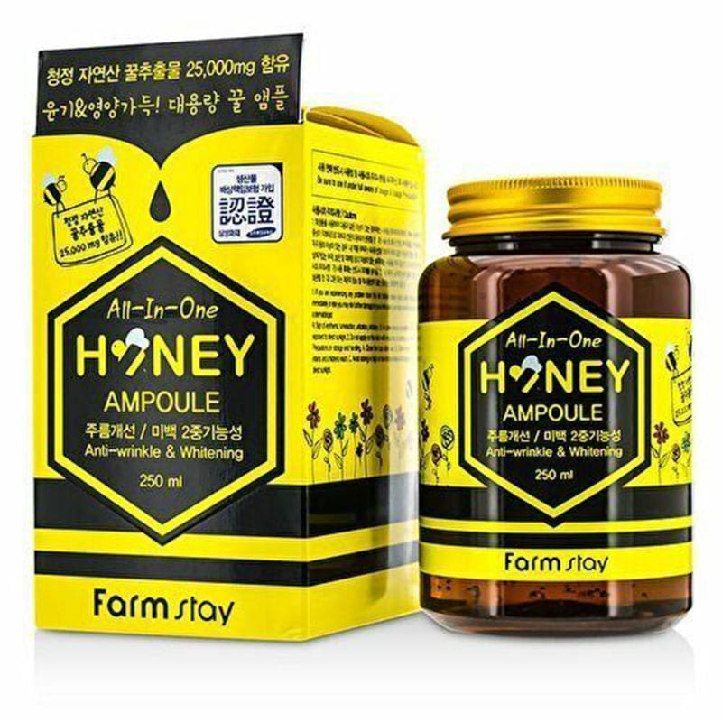 آمپول ضد چروک عسل فارم استی Farm stay، یکی از بهترین محصولات مراقبتی پوست است که با اولین استفاده، تاثیر آن را بر روی پوست خود احساس خواهید کرد. این آمپول حاوی عصاره های عصل، ژل رویال و بره موم می باشد. در ترکیبات این آمپول، ویتامین های گروه B مانندB1، B2 وB6 و همچنین نیاسین آمید و هیالورونیک اسید به کار رفته است. آمپول ضد چروک عسل فارم استی با وجود این ترکیبات، تاثیر بی نظیر و فوق العاده ای بر روی پوست خواهد داشت.