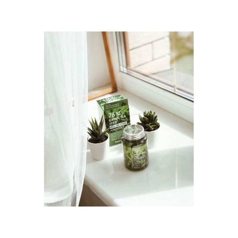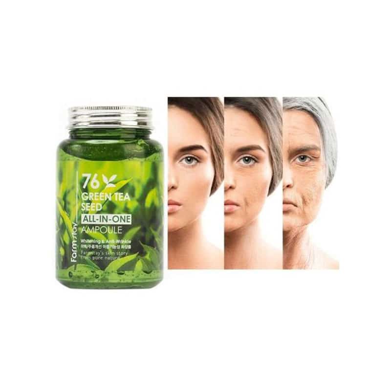 آمپول عصارهی چای سبز، یکی از بهترین محصولات برند فارم استی می باشد. این محصول همه فن حریف خاصیت ضد پیری، لیفت کنندگی و آبرسانی دارد. این آمپول برای مرطوب کردن پوست شما با عصارهی چای سبز طراحی شده است. با استفادهی مرتب آمپول عصارهی چای سبز Farm stay، یک سد رطوبتی بر روی پوست شما ایجاد می شود. بنابرین رطوبت مورد نیاز پوست تامین شده و از دهیدراته شدن پوست جلوگیری خواهد شد. یکی دیگر از خواص این آمپول، خاصیت ضد پیری آن است. آمپول عصارهی چای سبز ،دارای بافتی نرم و سبک می شاد و با اولین استفاده به راحتی به لایه عمقی پوست نفوذ می کندو از ایجاد چین و چروک و پیری پوست جلوگیری خواهد کرد. استفاده مداوم و روزانه از این آمپول، باعث سفید شدن و روشن شدن رنگ پوست می شود و پوست های تیره و کدر را بهبود می بخشد.