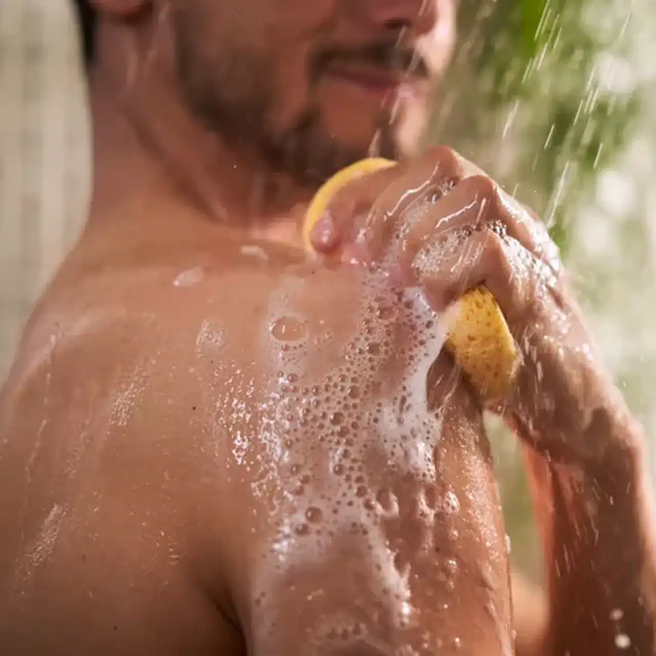 هنگام استحمام از ژل روی لیف ریخته و بدن را شستشو دهید.