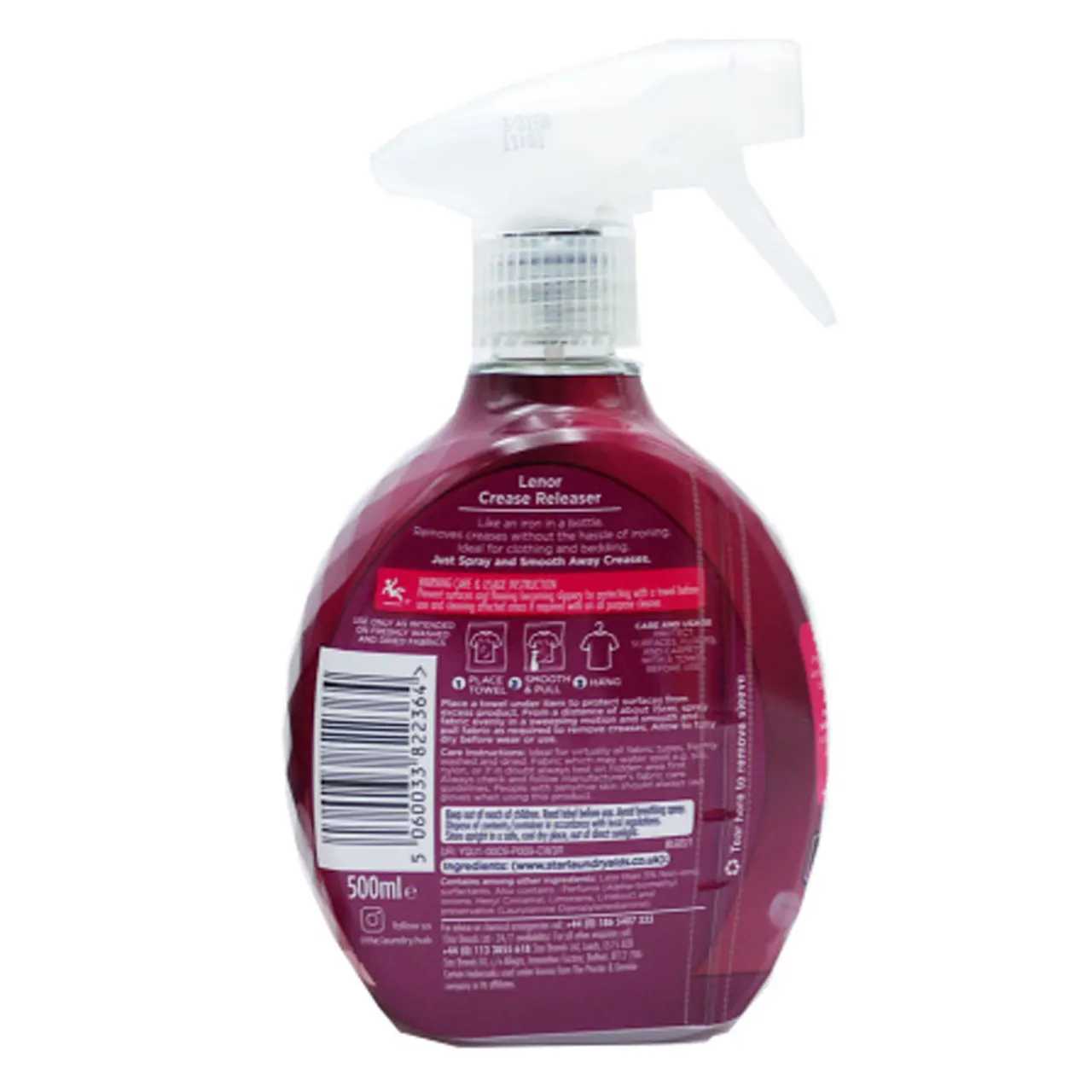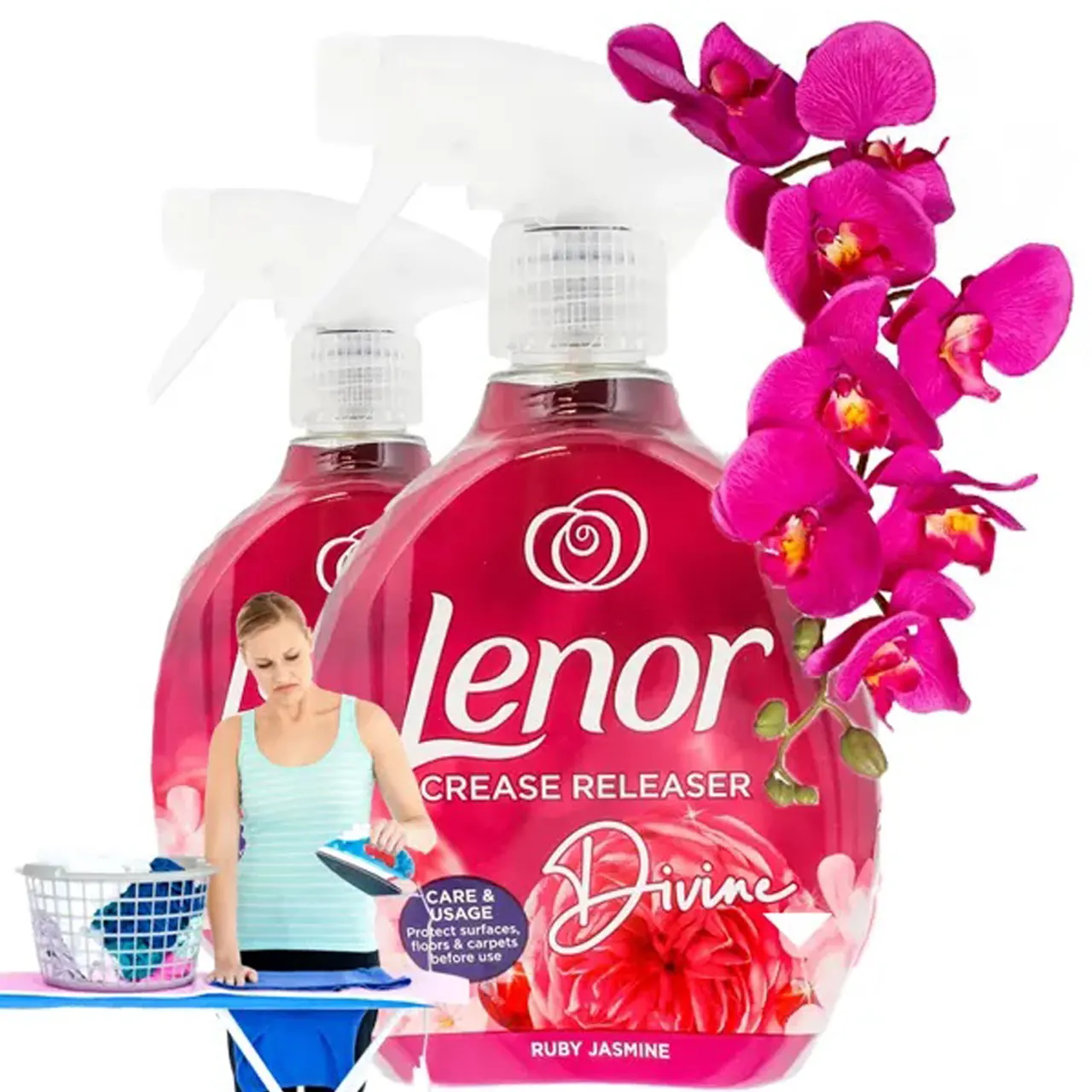 اسپری ضد چروک و اتو کننده لباس لنور lenor رایحه Ruby Jasmine یک محصول بی نظیر برای رفع چروک و چین لباس است. اسپری اتو لباس لنور محصول کشور انگلیس بوده و مدت زمان اتو کردن را بسیار کاهش می دهد. تازگی و لطافت را برای لباس ها به ارمغان می آورد. ترکیبات اسپری ضد چروک لنور بر پایه سیلیکون می باشد و پس از اتو الکتریسیته ساکن لباس ها را با قدرت کاهش می دهد.
