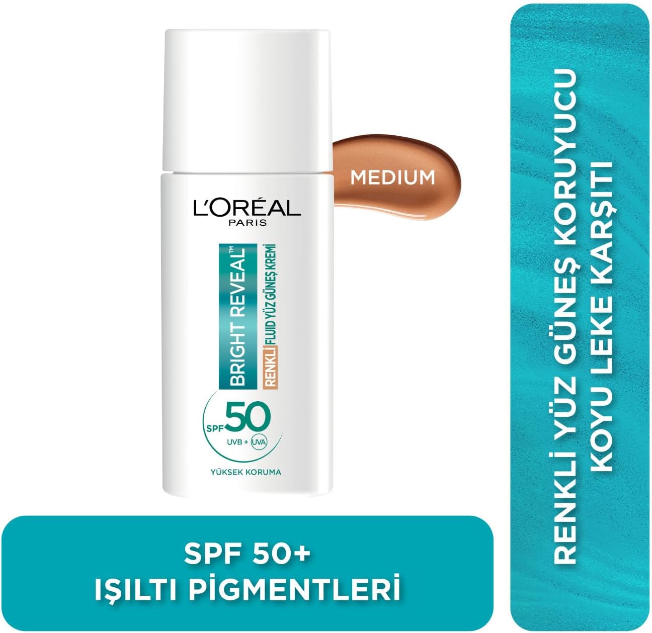 ضد آفتاب رنگی روشن کننده لورال Loreal مدل Bright Reveal رنگ Medium حجم 50 میل