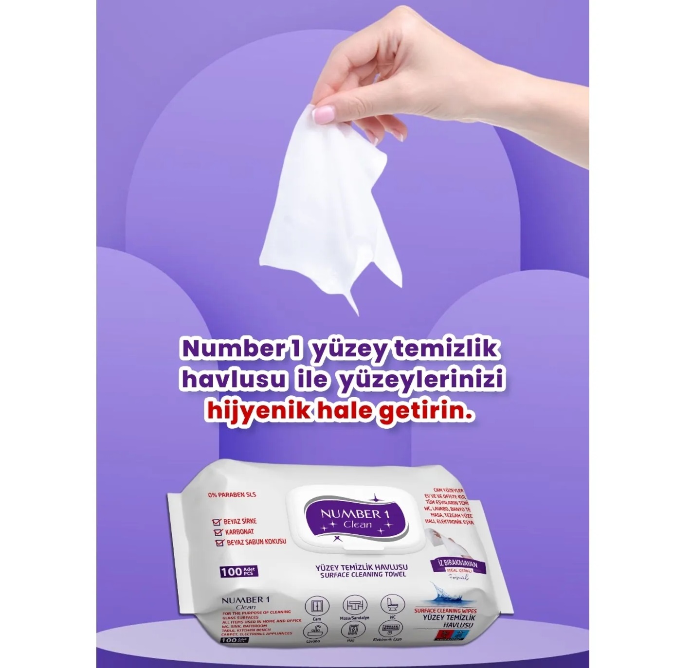 دستمال مرطوب همه و انواع سطوح کاره نامبر وان Number 1 بسته 100 عددی