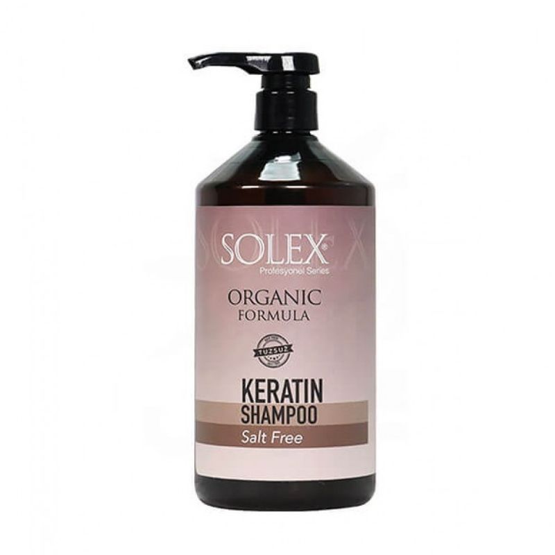 شامپو سولکس Solex فاقد نمک حاوی کراتین دارای فرمولاسیونی با مواد کراتین است که موهای سر را بعد از مدتی استفاده، تقویت و نرم می کند. کراتین هیدرولیزه شده در شامپو کراتینه مو سولکس به خوبی آبرسانی موها را انجام داده و منجر به حفظ رطوبت موی سر میشود که نتیجهی آن نرمی، لطافت و درخشان شدن موی سر شماست. استفاده از رنگ مو و اکسیدانها برای خانمها باعث میشود موها ضعیف شده و کراتین آن کم شود لذا استفاده از شامپو مو کراتینه سولکس به رفع این مشکل پرداخته و سبب تقویت و ترمیم موها میشود. از دیگر ویژگیهای کراتین موجود در شامپو کراتینه مو سولکس Solex میتوان به رفع موخوره و شکنندگی مو، ترمیم و تقویت فیبر ساقه مو و استحکام هرچهبیشتر موها اشاره کرد. شامپو کراتین مو سولکس دارای ساختاری کاملاً ارگانیک و عاری از پارابن، سولفات و الکل و نمک میباشد.